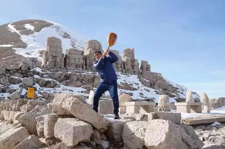 Geçtiğimiz günlerde UNESCO korumasındaki Nemrut Dağı'na çıkan türkücü Aydın Aydın, yapay zekaya tepki için ilginç bir protestoya imza atmış ve beraberinde getirdiği bağlamayı tarihi taşlara vurarak parçalamıştı.