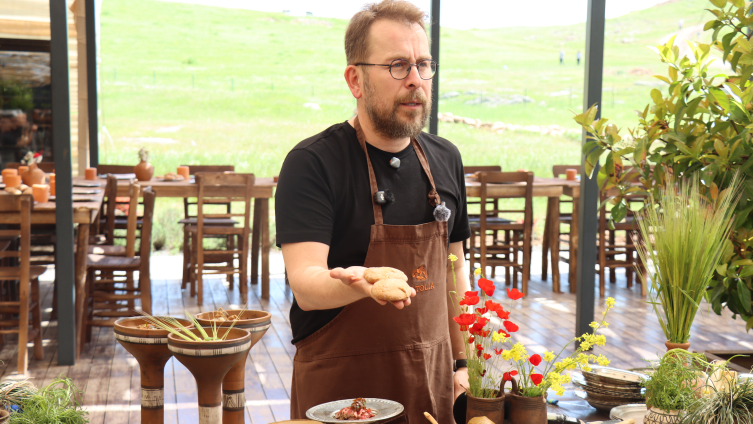 "O dönemde buğday haricinde, çiğ bakla, yeşil nohut ve otları çok kullanmışlar. Ben de menümde kullandım. Bu bölgede çöl mantarı var, çok fazla yetişiyor. Biz onu 'trüf' diye tanıyoruz ama buradaki başka bir türü. Bunları kullanmaya başladım yemeklerimde. Ben artık neredeyse marketten bir şey alıp yemek yapmaktan daha ziyade hepsini buralardan toparlayıp yemeği daha çok seviyorum çünkü bana göre hafıza, kültür, miras bunlarla yaşamak ve Taş Tepeler dünyanın en büyük zenginliği. Monte Carlo'da, Paris'te, Hollywood'da dünyanın en iyi lokantalarında yemek yiyebilirsiniz ama hiçbiri gerçek değil. Tüm gerçeklik burada. O yüzden de ona parası olan herkes ulaşabilir ama bu gıdalara kültür, miras, saygı, bu tür birikimleri olan insanlar ulaşıyor.