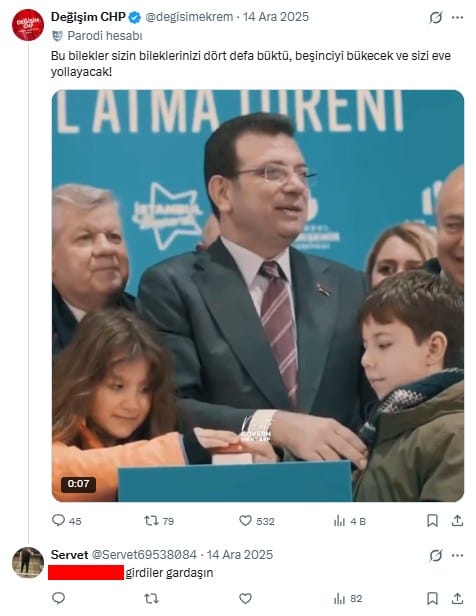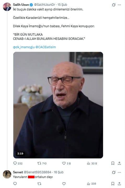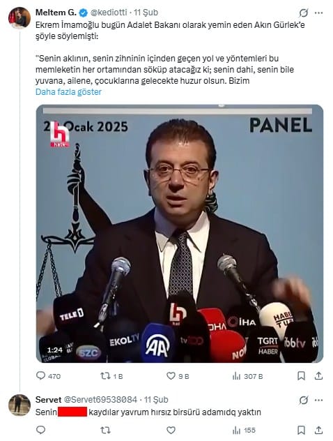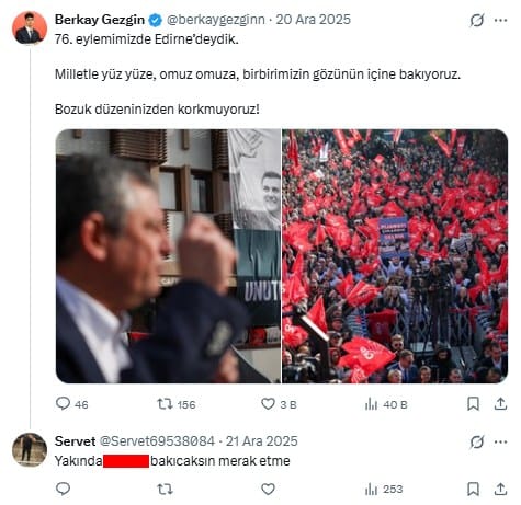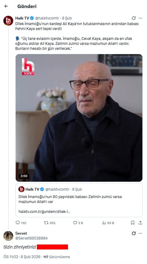 İŞTE İTİRAFÇININ SOSYAL MEDYA KÜFÜRLERİİşte Servet Yıldırım'ın, anonim olarak kullandığını düşündüğü ancak kendi fotoğrafını paylaştığı @Servet69538084 kullanıcı isimli X hesabından yaptığı hakaret ve küfür içerikli yorumlarından bazıları: