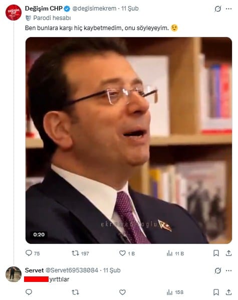 DOSYADA ADI GEÇENLERE İĞRENÇ KÜFÜRLER ETMİŞKırdığı pot ile gündeme gelen Yıldırım'ın, sosyal medya X platformunda Servet (@Servet6953808) kullanıcı isimli bir hesabı kullandığı ve bu hesaptan İmamoğlu dahil adı İBB soruşturmasında geçen birçok kişiye küfürler ettiği ortaya çıktı.