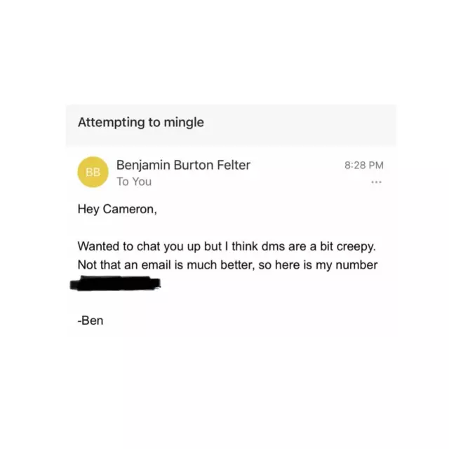 "DM'LER ÜRKÜTÜCÜ, E-POSTA DAHA İYİ"Brink'in paylaştığı e-postada nişanlısı, "Seninle sohbet etmek istedim ama DM'lerin biraz ürkütücü olduğunu düşünüyorum. E-postanın çok daha iyi olduğunu söyleyemem ama işte numaram..." ifadelerini kullandı. Mesajdaki doğrudan ve mizahi yaklaşım takipçilerin dikkatini çekti.
