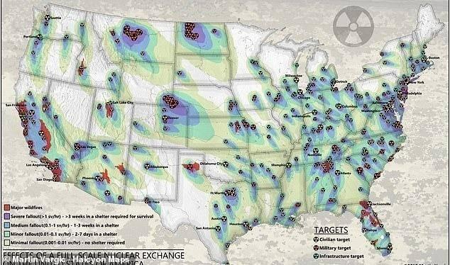 İngiliz basınında yer alan habere göre, nükleer savaş çıkması durumunda ABD büyük bir felaketle karşı karşıya kalabilir. Paylaşılan haritada ülkede en fazla can kaybının yaşanabileceği bölgeler tek tek işaretlendi.