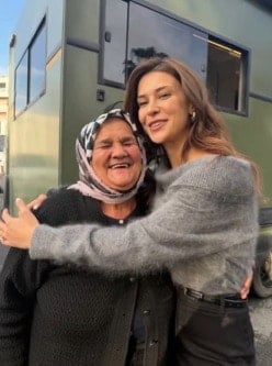 Devrim Özkan'a sarılan kadın "Ben de sana bayılıyorum çok teşekkür ederim canım benim. Her zaman gel Çökertme'ye." diyerek ünlü oyuncuyu öptü.