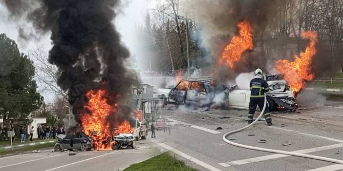 6 aracın birbirine girdiği zincirleme kazanın ardından yangın felaketi!
