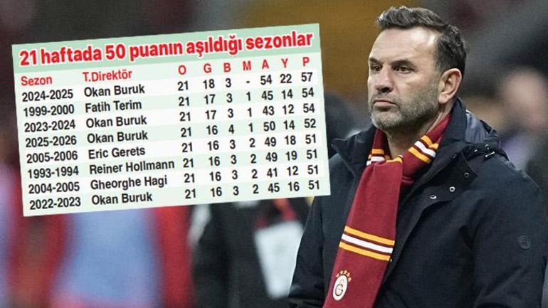 Galatasaray Teknik Direktörü Okan Buruk, fark yaratmaya ve rekorlar kırmaya devam ediyor. Sarı-Kırmızılı takımın 3 puanlı sistemde 21. haftalar itibarıyla 50 puan barajını aştığı 8 sezon var ve bunların 4’ünde Okan Buruk’un imzası bulunuyor.
