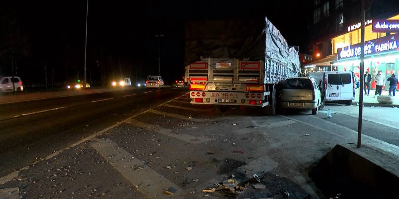 45 NJ 531 plakalı TIR, şoför Ercan C.'nin direksiyon hakimiyetini kaybetmesi sonucu önce park halindeki hafriyat kamyonuna, daha sonra park halindeki 4 araca çarparak durabildi.