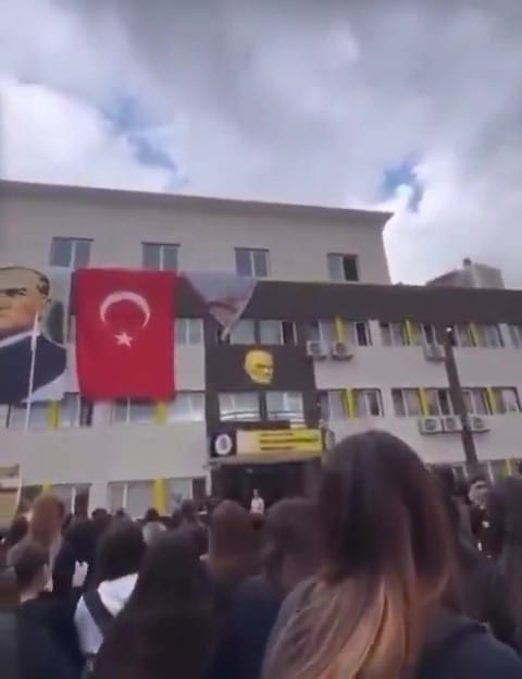 Çok sayıda öğrenciler, okul bahçesinde Erdoğan'ın posterini alkışlarla protesto etti.
