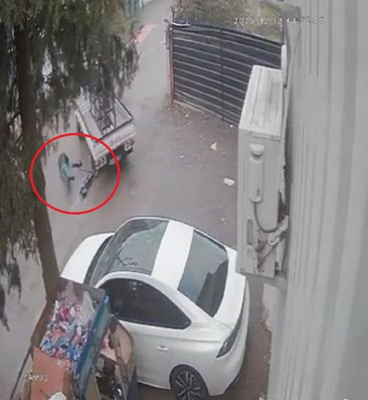 Kamyonet sürücüsü Ercan Ç. gözaltına alınırken, kaza bir iş yerinin güvenlik kamerasına yansıdı. Görüntülerde, park halinde bulunan kamyonetin kontrolsüz şekilde caddeye çıktığı, scooter sürücüsü Serdar Zencirkıran’ın çarpmamak için manevra yaparken, kontrolünü kaybedip düştüğü ve aracın altına savrulduğu görüldü.