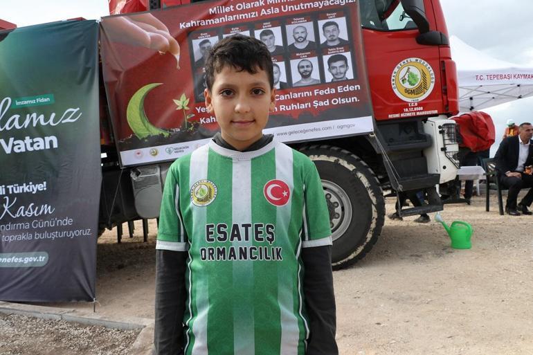Orman şehidi Eyüp Dereli’nin oğlu Batuhan Dereli (10), fidan dikim etkinliğinde babasını andı. Babasının adını yaşatmak istediğini dile getiren Dereli, “Şu anda kendimi mutlu hissediyorum. Çünkü bu hem vatanımız için, vatanımızda daha fazla oksijen kaynağı olacak hem de bu Eskişehir ve tüm dünya ülkeleri için hepimize armağan olacak. Babam şu an burada olsaydı kendisini mutlu hissederdi. Ben de şu anda babam gibi kendimi mutlu hissediyorum. Böyle bir yer yapıldığı için gerçekten çok mutluyum. Benim hayalim, ileride babam gibi iyi bir dozer operatörü olmak. Bazen okullar tatil olunca, evde canım sıkıldığında onun yanına giderdim. Bazen eğlenceli aktiviteler yapardık, dışarıda gezerdik. En sevdiğimiz aktivite dışarı çıkıp, bisiklet sürmekti. Çok mutlu oldum ve duygulandım” dedi.