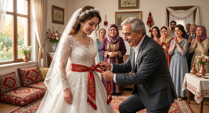 Türklerin İslamiyet’i kabul etmesinden sonra bu gelenek, dini ve ahlaki anlamlarla yeniden yorumlanmıştır. Günümüzde gelinin beline bağlanan kırmızı kuşak; bekâret, namus, sadakat ve ailenin onurunu temsil eder. Kuşağın genellikle gelinin babası veya aile büyüğü tarafından bağlanması ise, kızın baba evinden çıkışını ve yeni bir aileye geçişini simgeler.