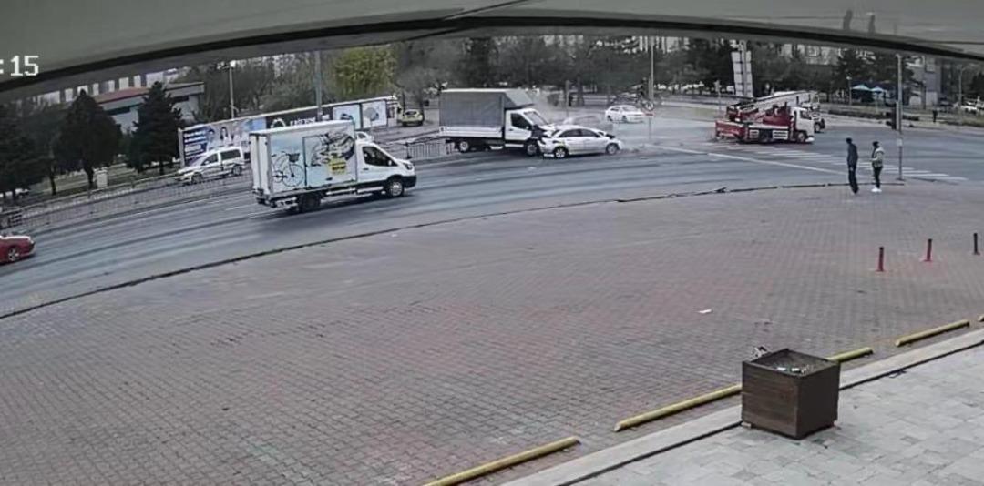 Öte yandan meydana gelen kaza bir iş yerinin güvenlik kamerasına saniye saniye yansıdı.