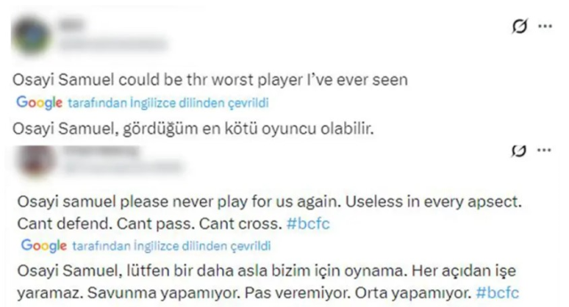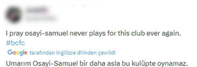 Middlesbrough'a karşı yenen 2 golde Osayi-Samuel'in hatası olduğunu düşünen taraftarlar, deneyimli futbolcunun bir daha sahaya çıkmamasını isteyen yorumlar yaptı.