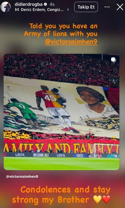 Chelsea efsanesi olan ve bir dönem Galatasaray'da da forma giyen eski yıldız futbolcu Didier Drogba, sarı-kırmızılı ekibin Nijeryalı santrforu Osimhen için flaş bir paylaşımda bulundu.