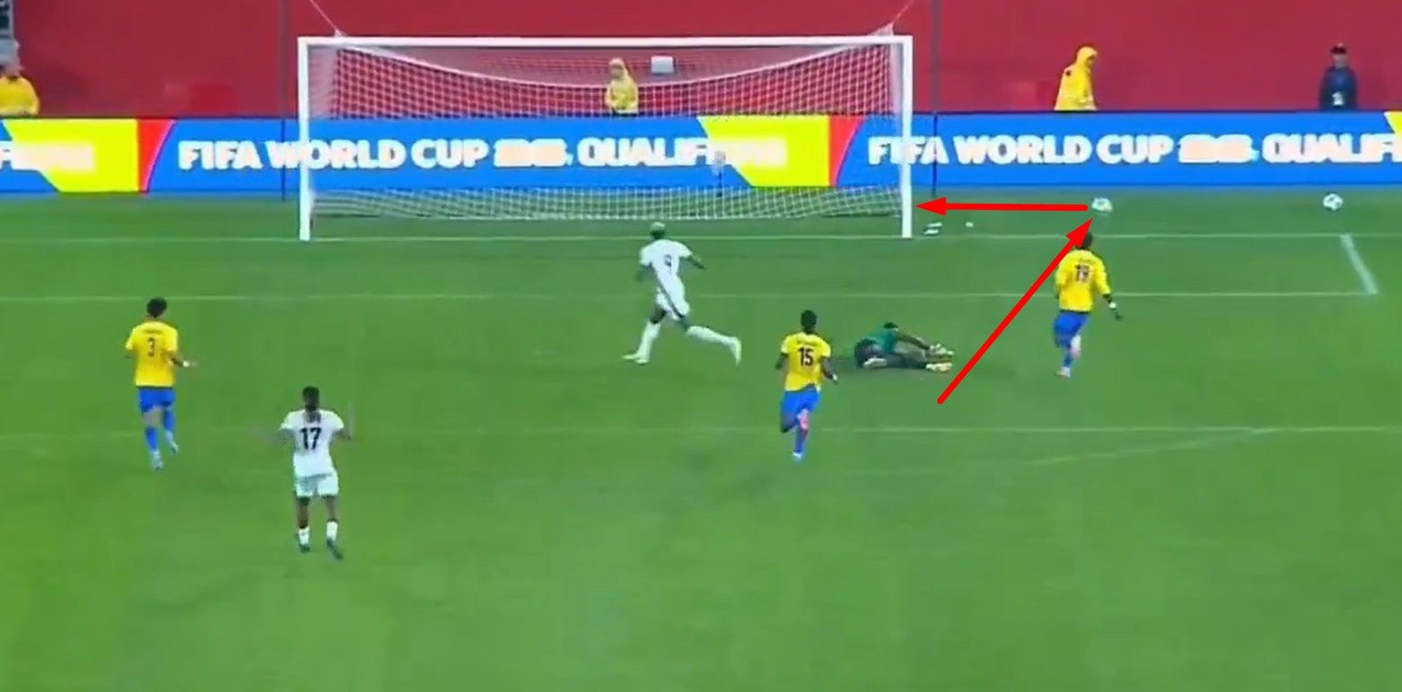 Attığı 2 şık golle galibiyetin mimarlarından olan Osimhen uzatma bölümüne geçilmeden hemen önce, maç 1-1 devam ederken Gabon yarı sahasında bomboş kaldı. Topu sürerek ceza alanına kadar gelen yıldız golcü Gabon kalecisi ile karşı karşıya çok rahat pozisyonda topu dışarıya attı!