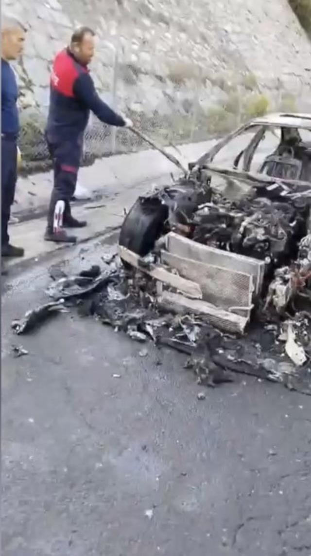 Yangında yaralanan olmazken, otomobil küle döndü. Yangının çıkış nedeninin belirlenmesi için inceleme başlatıldı.
