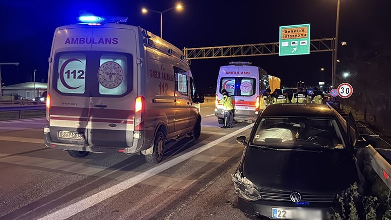 Edirne Avrupa Otoyolu Gişeleri Karayolları Denetim İstasyonu önünde ters yönde ilerleyen A.T.Ç.'nin kullandığı 22 AR 654 plakalı otomobil, sürücüsünün direksiyon hakimiyetini kaybetmesi sonucu bariyere çarptı.