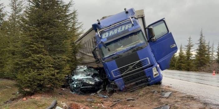 Eskişehir'de dehşet! TIR ile çarpışan otomobil metrelerce sürüklendi! 1 ölü 2 yaralı