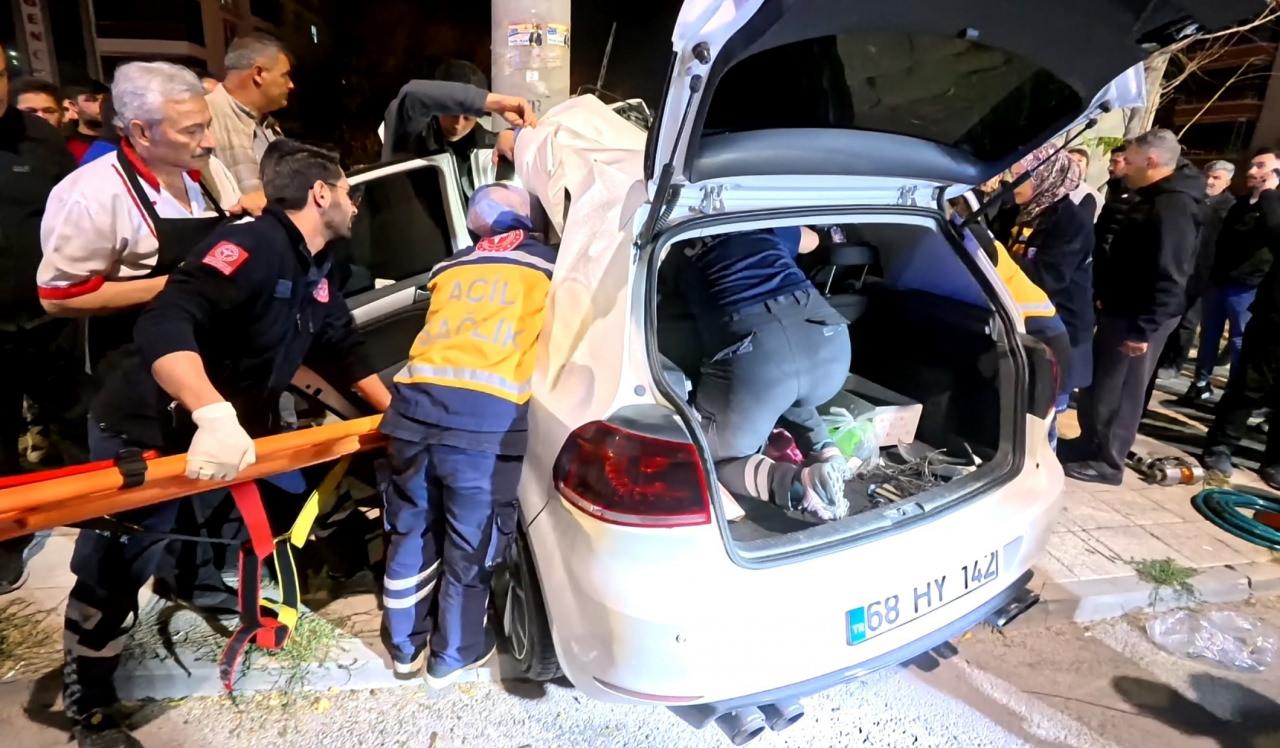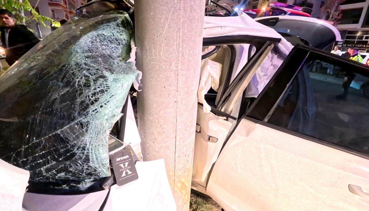 Otomobil direğe bir ok gibi saplandı: 2 ağır yaralı