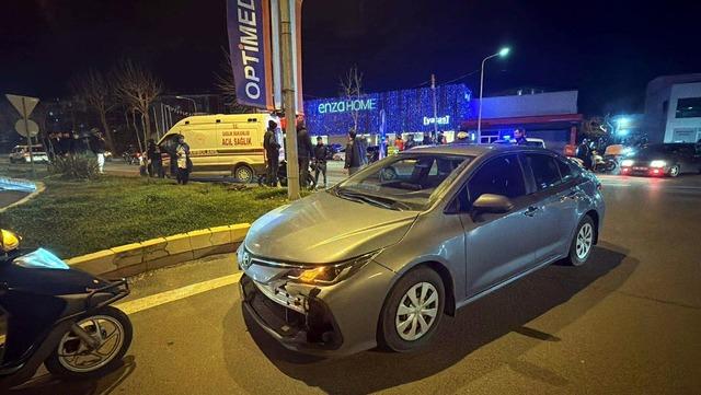 Otomobil ile çarpışan motosikletin sürücüsü yaralandı; kaza kamerada