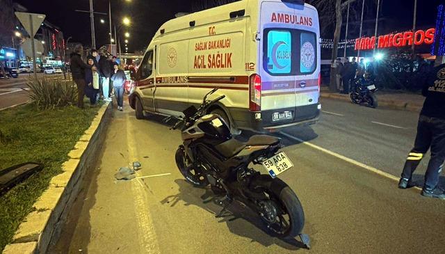 Kaza, gece saatlerinde Kazimiye Mahallesi Omurtak Caddesi’nde Asri Mezarlık mevkisinde meydana geldi. Mustafa Ç.'nin kullandığı 59 AOA 838 plakalı motosiklet, akaryakıt istasyonundan çıkış yapan M.Ş., yönetimindeki 59 ACC 428 plakalı otomobil ile çarpıştı. Savrulup motosikletten düşen Mustafa Ç. yaralandı. Çevredekilerin ihbarı üzerine kaza yerine polis ve sağlık ekipleri sevk edildi. Mustafa Ç. ambulansla Çorlu Devlet Hastanesi’ne kaldırıldı.