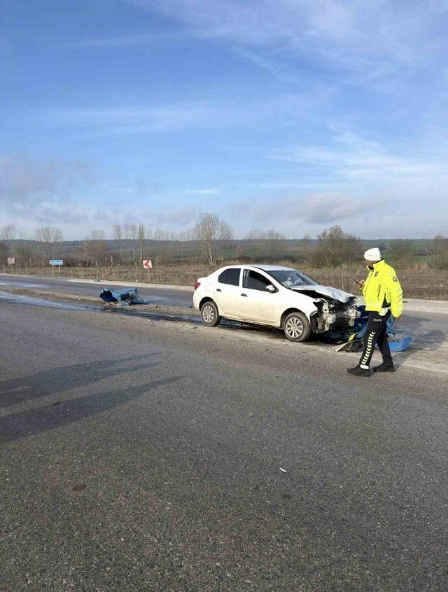 Edinilen bilgilere göre, Lüleburgaz ilçesine bağlı Ataköy istikametinden Pınarhisar Çevre Yolu girişine seyir halinde olan bir otomobil, yol ayrımı noktasında sürücüsünün duble yol girişini direksiyon fark edememesi sonucu yön tabelasına çarptı.