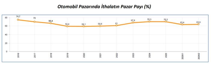 SATIŞLARIN YÜZDE 64'Ü İTHAL2026 yılı Ocak-Şubat ayında otomobil pazarında ithalatın payı yüzde 64 olarak gerçekleşti.
