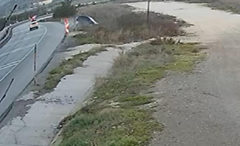 Otomobilin yoldan çıkıp ters döndüğü kaza kamerada; 1 yaralı