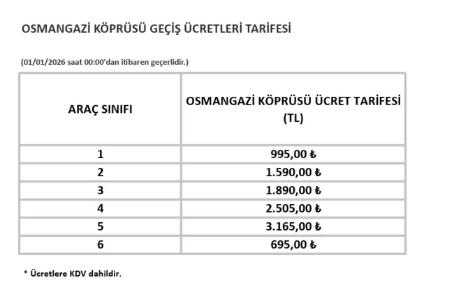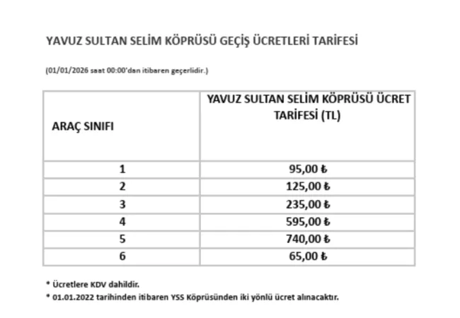 Bu konudaki diğer haberler:Köprü ve otoyol ücretlerine zam mı geldi? KGM ile 2026 köprü ve otoyol ücretleri ne kadar oldu?