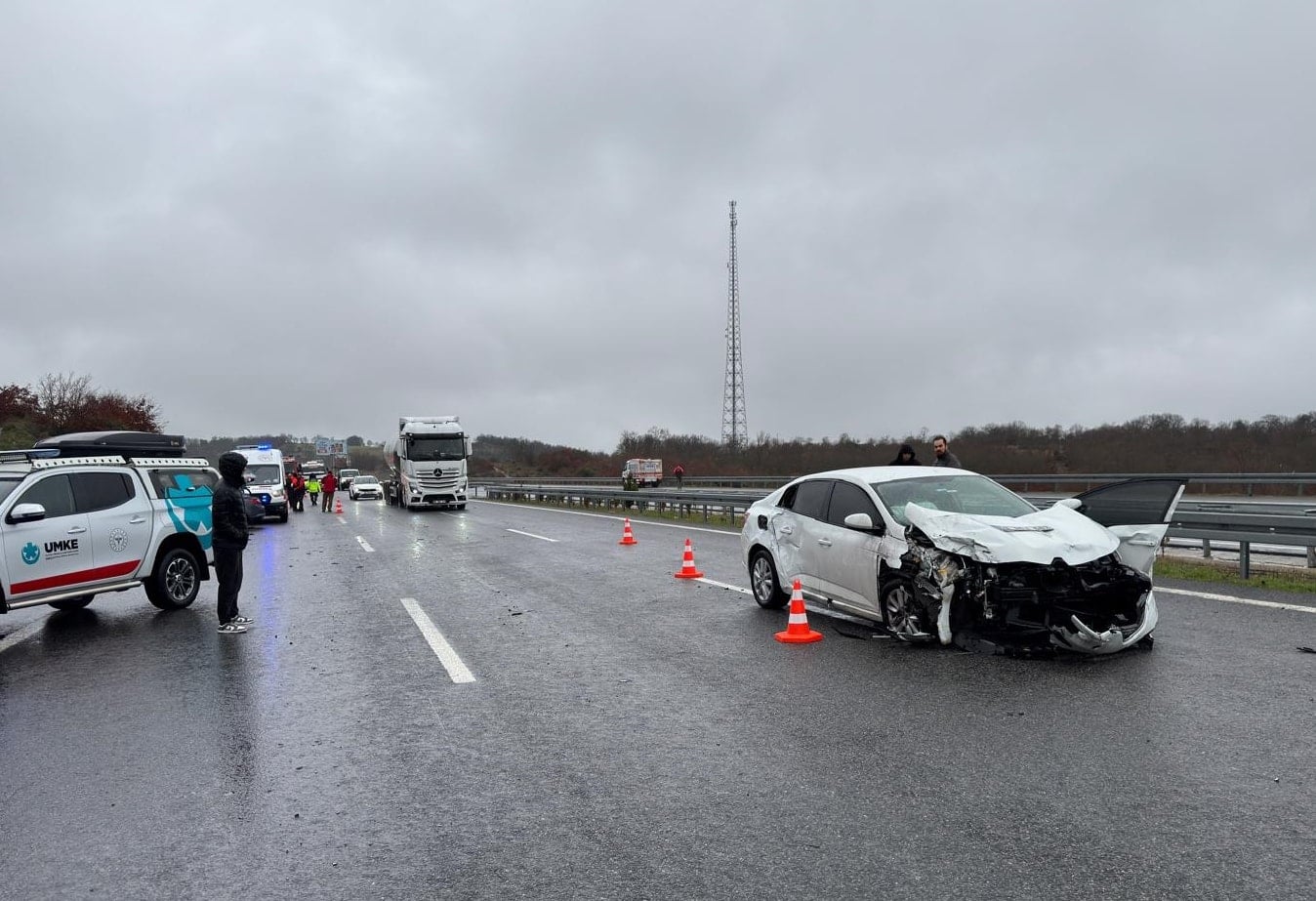 Otoyolda çok sayıda aracın karıştığı zincirleme trafik kazası ihbarı üzerine bölgeye çok sayıda ambulans, itfaiye ve jandarma ekibi sevk edildi.