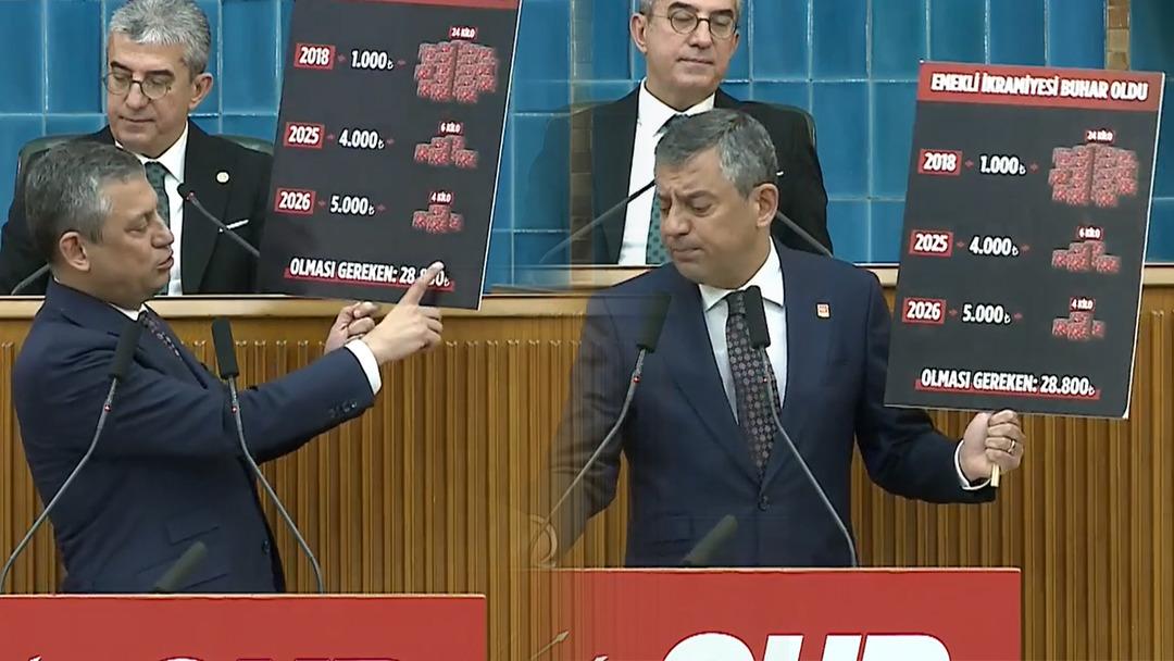 Son dakika haberi: CHP Genel Başkanı Özgür Özel partisinin grup toplantısında gündeme ilişkin değerlendirmelerde bulunuyor. Özel'in konuşmasında emekli ikramiyesi ve ramazan kolisi hesabı dikkat çekti.