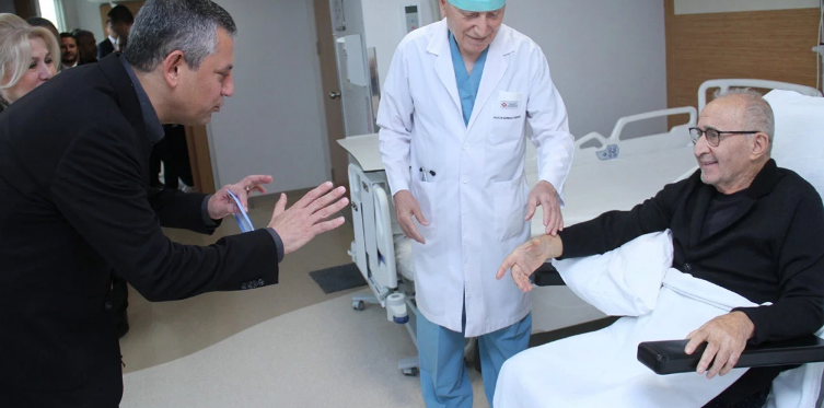 CHP Genel Başkanı Özgür Özel, Başkent Üniversitesi Hastanesi’nde tedavi altında olan CHP eski Genel Başkanı ve TBMM Başkanı Hikmet Çetin’i ziyaret etti. İlk olarak Prof. Dr. Mehmet Haberal’ın çalışma ofisine giden Özel, burada sohbet ettikten sonra Haberal ile birlikte Hikmet Çetin’in tedavi gördüğü odaya geçti.