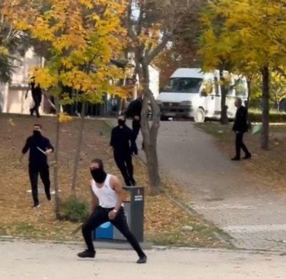 Daha sonra elinde "pala" denilen kesici aletlerle ortaya çıkan kar maskeli bir grup, diğer öğrenci grubuna saldırıda bulunmuştu.