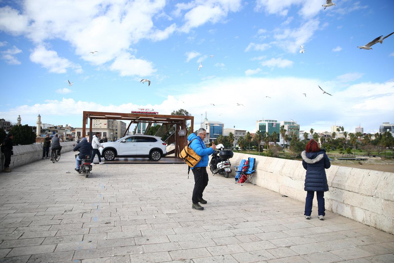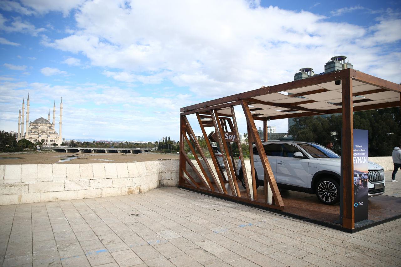 Yeni renk seçeneğiyle sergilenen Togg'un T10X modeli, kentin simgelerinden tarihi Taş Köprü üzerinde vatandaşlarla buluşturuldu.