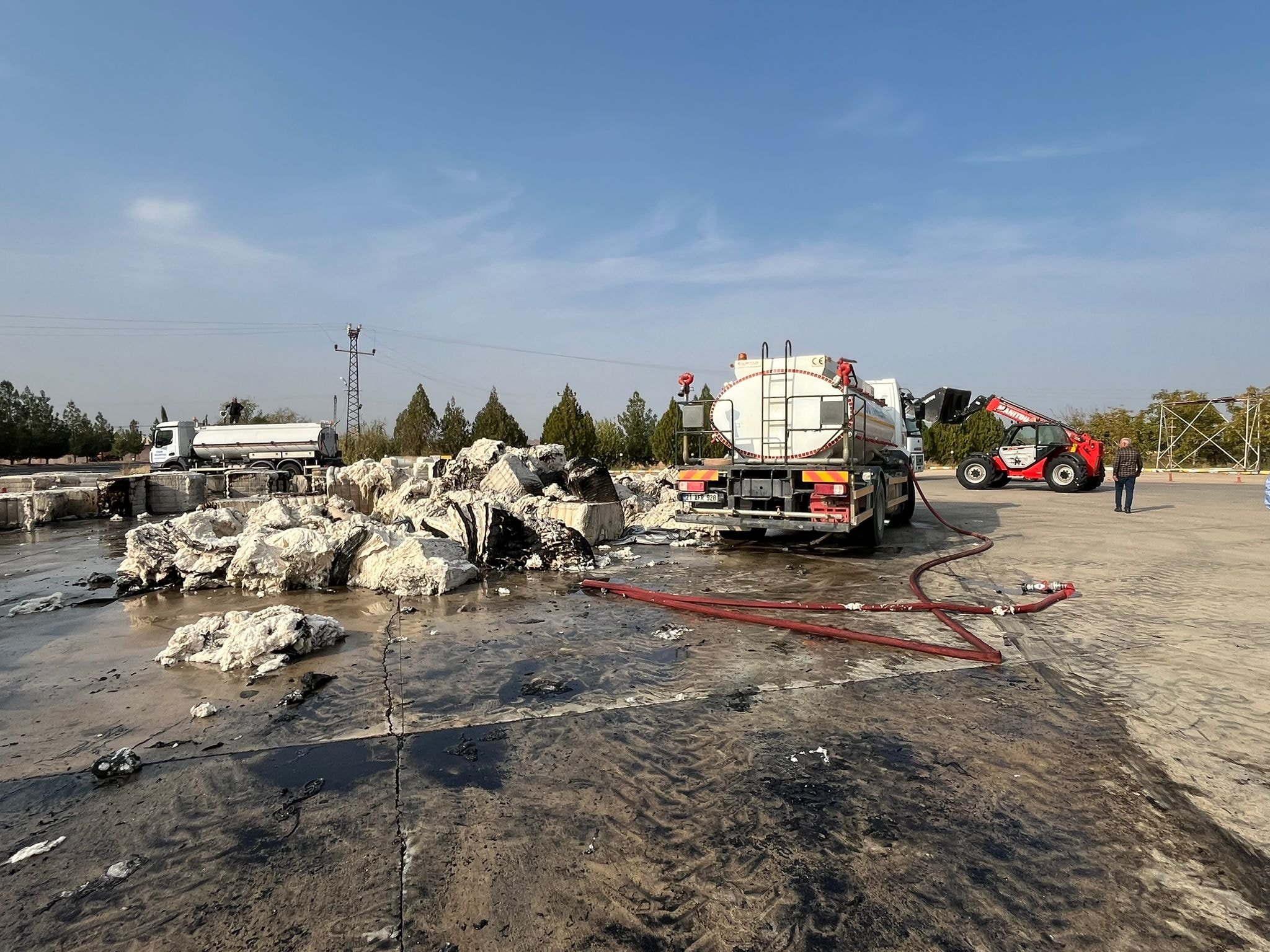 Çınar ilçesindeki bir akaryakıt istasyonunda park halindeki plakası öğrenilemeyen pamuk yüklü tırın dorsesinde, henüz belirlenemeyen nedenle yangın çıktı.