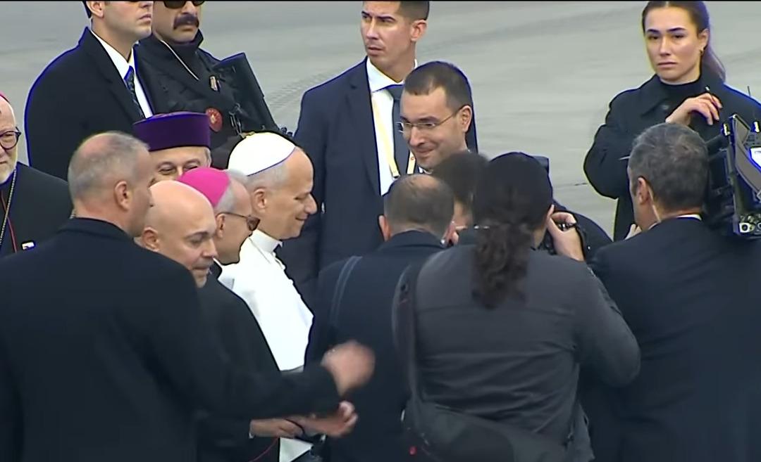 Papa 14. Leo, havalimanında Kültür ve Turizm Bakanı Mehmet Nuri Ersoy ve yetkililer tarafından karşılandı.