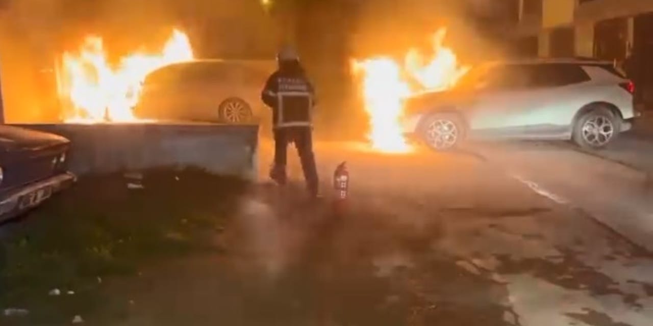 Park halindeki araçlar alev alev yandı!