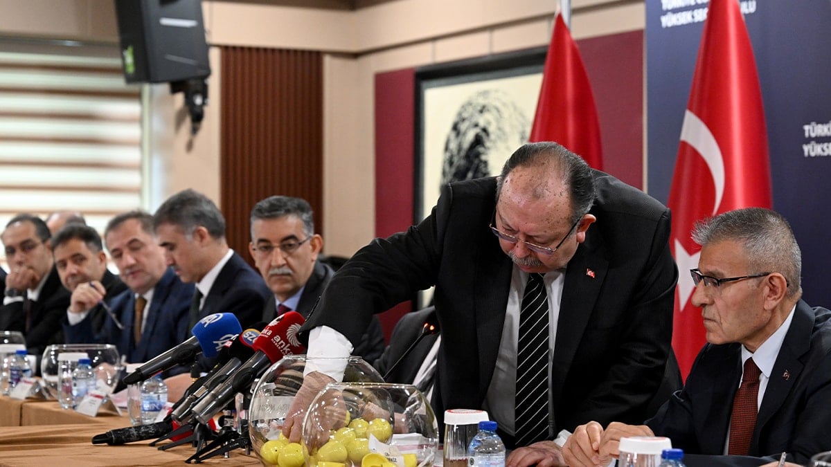 Yüksek Seçim Kurulu (YSK) Konferans Salonu'ndaki kura törenine, YSK Başkanı Ahmet Yener, YSK üyeleri ile siyasi partilerin temsilcileri katıldı.