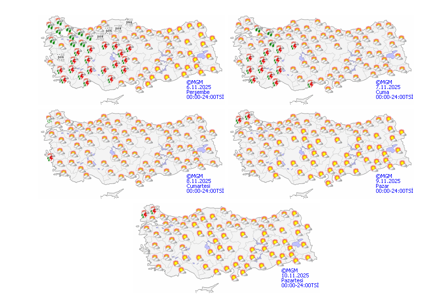 SİS VE PUS TRAFİĞİ ETKİLEYEBİLİRSabah ve gece saatlerinde Marmara, Batı ve Orta Karadeniz’in iç kesimleri ile Kuzey Ege kıyılarında yer yer sis ve pusun etkili olacağı öngörülüyor. Görüş mesafesinde azalma yaşanabileceğinden özellikle kara ve deniz ulaşımında dikkatli olunması gerektiği ifade edildi.