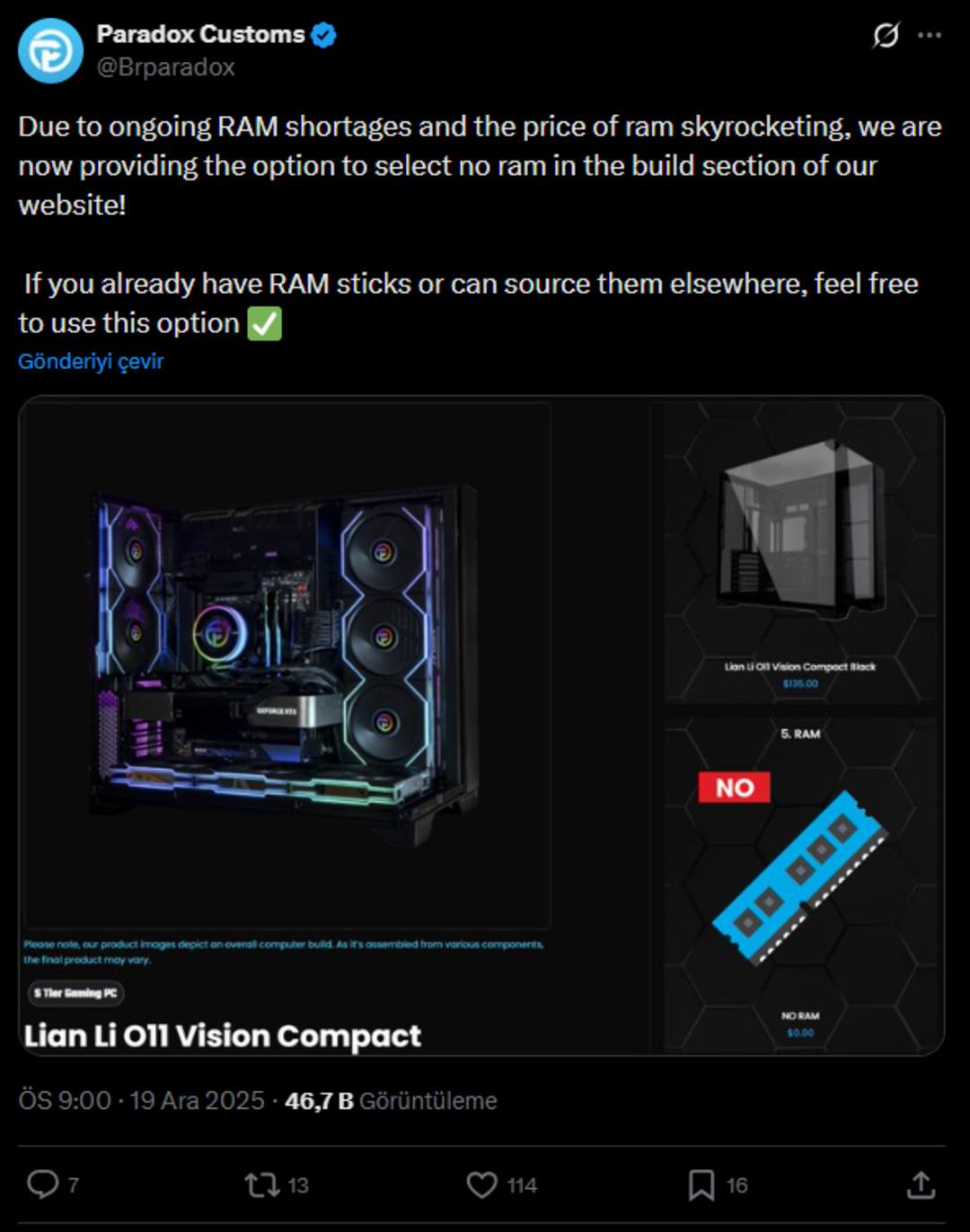 Dünya genelinde artan bileşen fiyatları yüzünden bilgisayar toplamak veya hazır bir sistem satın almak daha da maliyetli hale geliyor. Ancak görünüşe bakılırsa, RAM dünyasında son dönemde yaşanan tedarik sorunları ve fiyat artışı ise PC pazarında ilginç bir satış stratejisini doğurdu.