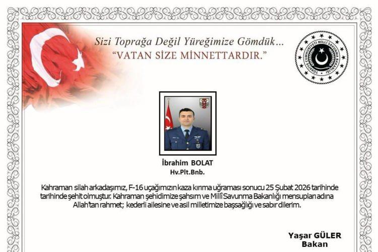 Kazada Pilot Binbaşı İbrahim Bolat şehit oldu. Şehit pilotun naaşı saat 11.00'de Balıkesir 9. Ana Jet Üssü'nde düzenlenen uğurlama töreninin ardından Çiğli Ana Jet Üssü'ne getirildi.