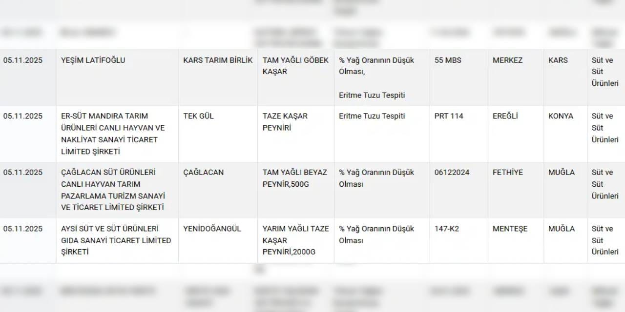 Peynir ve sıvı yağlarda hile...Bakanlık listeli şekilde tek tek ifşa etti