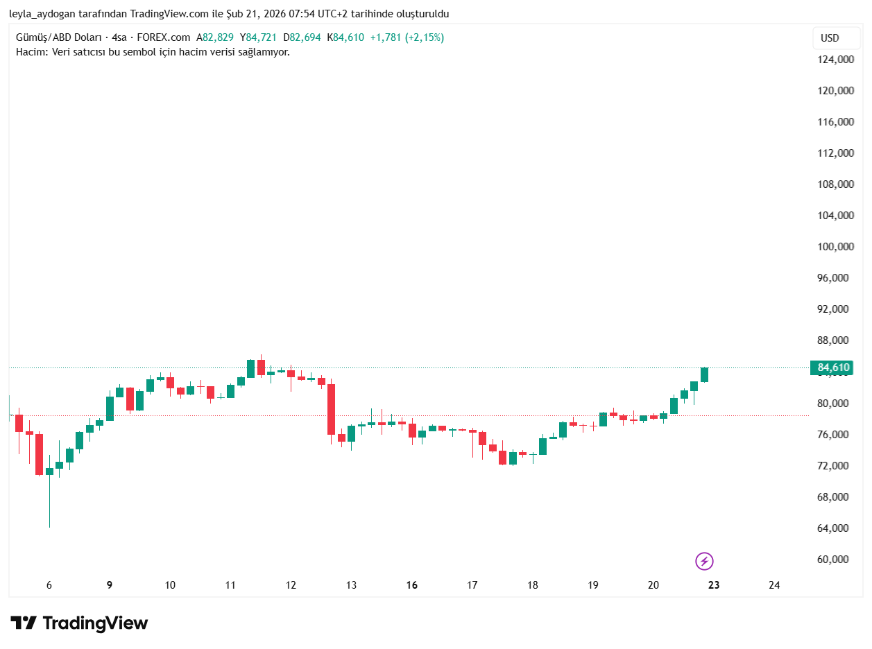 Gümüş fiyatları, hem zayıf dolardan hem de küresel ticaretin canlanacağı (imalat sanayi maliyetlerinin düşeceği) beklentisinden çifte destek alarak agresif bir yükseliş sergiledi. Tarifelerin iptal kararı sonrası belirsizlikle birlikte gümüş de son zamanların en yüksek seviyesini gördü. Gümüş 84,61 dolarda bulunuyor.