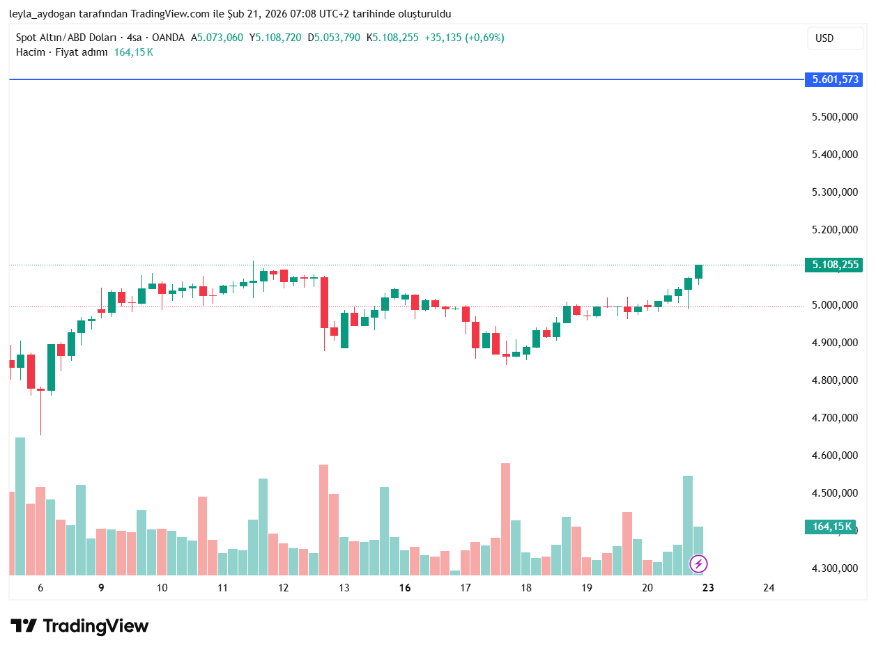Ons altın, kritik psikolojik eşik olan 5.000 dolar barajını yıkarak gün içerisinde 5.108 dolar seviyesini test ederek son 10 günün en yüksek seviyesinde.