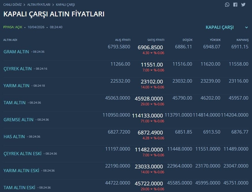 Kapalıçarşı altın fiyatları resmi altın fiyatları arasındaki fark devam ediyor. Gram altın Kapalıçarşı'da 6 bin 907 lirada bulunuyor. İşte Kapalıçarşı altın fiyatları...