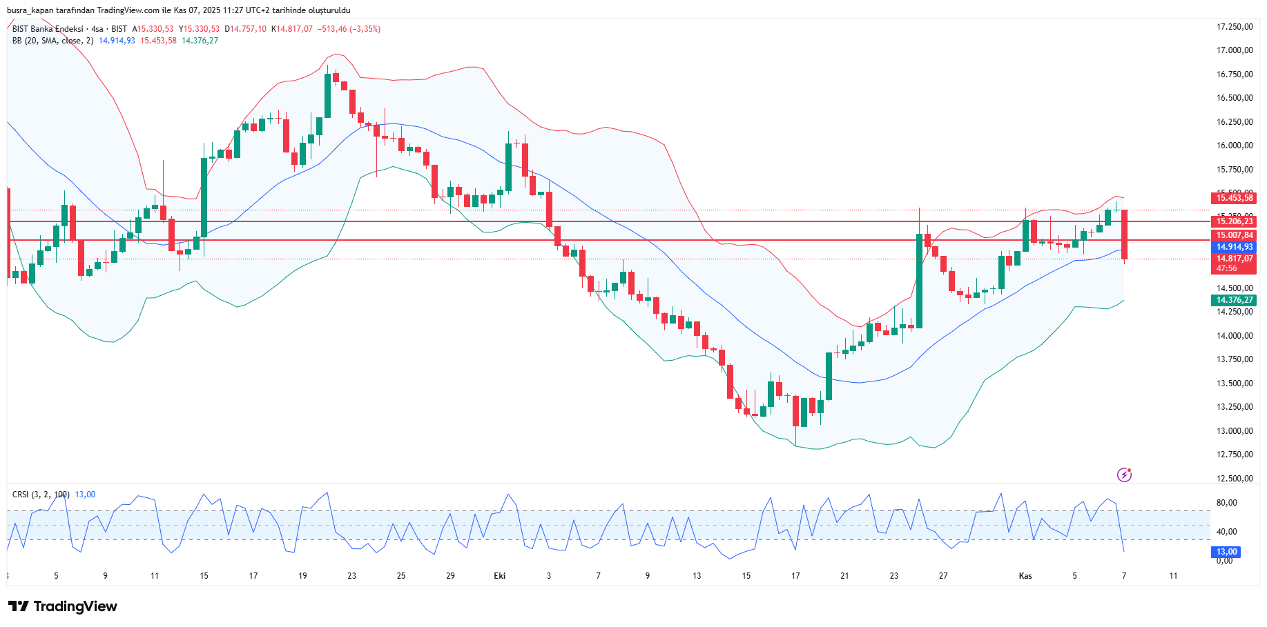 Bankacılık endeksi de sert düşüşler yaşadı. Sunum öncesinde 15 bin 206 puanda olan bankacılık endeksi yüzde 3'ten fazla düşüş yaşayarak 14 bin 805 puana geriledi.