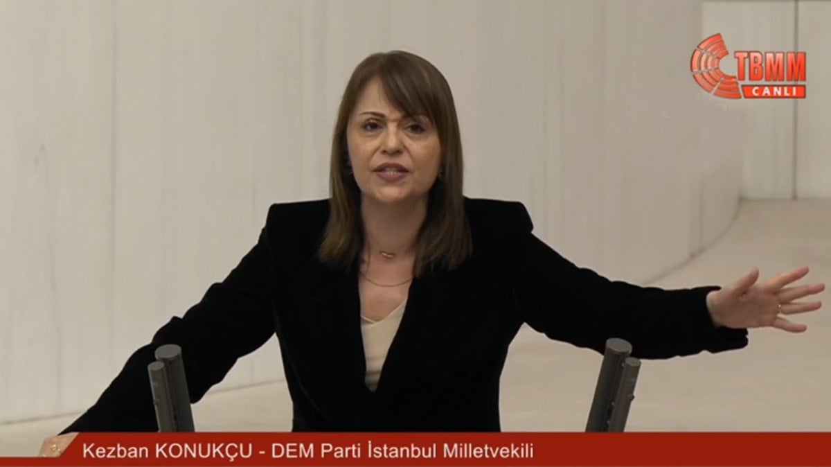 KONUŞMASI SIRASINDA KONUŞAN AKP’LİLERE TEPKİ GÖSTERDİ: Ben senin bildiğin kadınlara benzememTBMM’de DEM Milletvekili Kezban Konukcu AKP sıraları arasında ‘Terbiyesiz’ tartışması yaşandı.