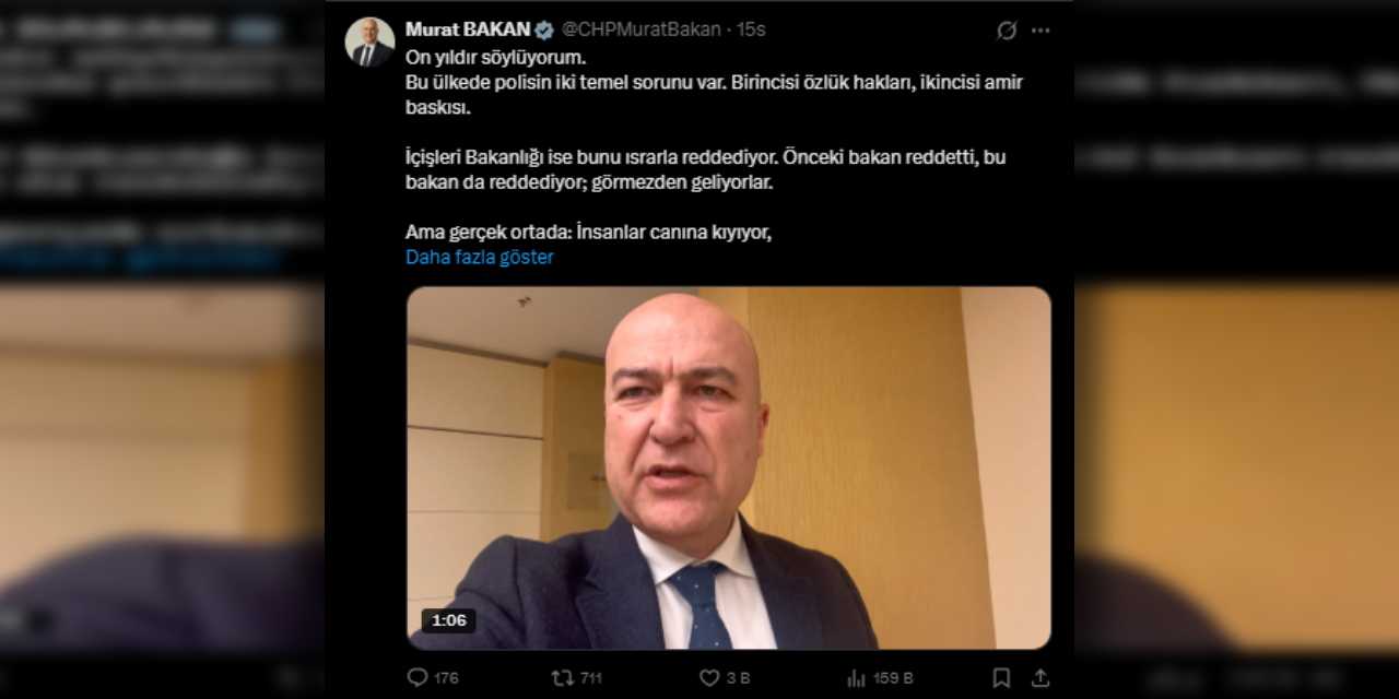 ALİ YERLİKAYA'DAN YANIT İSTEDİMurat Bakan, artan polis intiharlarını hatırlatarak İçişleri Bakanı Ali Yerlikaya'nın cevaplaması için soru önergesi vereceğini belirten Bakan, paylaşımında şu ifadeleri kullandı: