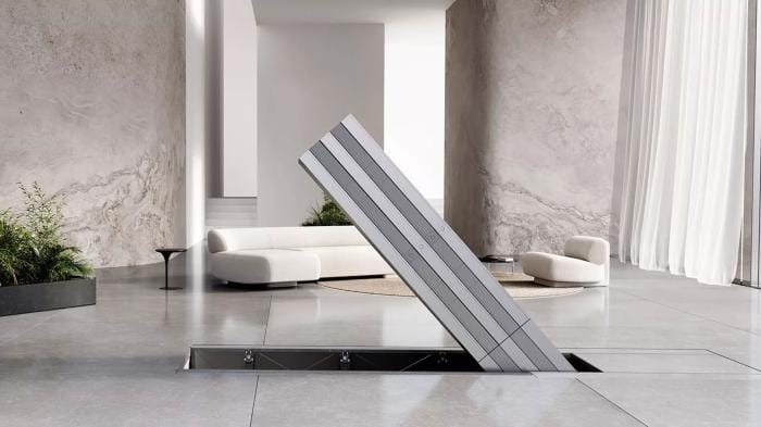 Yerden yükselen ve bilim kurgu heykelini andıran bir şekilde açılan bu televizyon, en son teknolojiyi ve ultra lüks tasarımı bir araya getiriyor ancak fiyatı inanılmaz derecede yüksek.