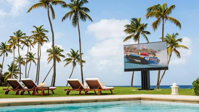 Dış mekan versiyonu , daha yüksek bir destek sütunu, altı hoparlörlü bir sistem ve kullanılmadığı zamanlarda yer altı bir alana tamamen gizlenebilme seçeneğiyle çıtayı daha da yükseltiyor . Hatta süper yatların güverteleri için özel olarak tasarlanmış bir konfigürasyon bile mevcut olup , hedef kitlenin hiçbir finansal engel tanımamasını sağlıyor.