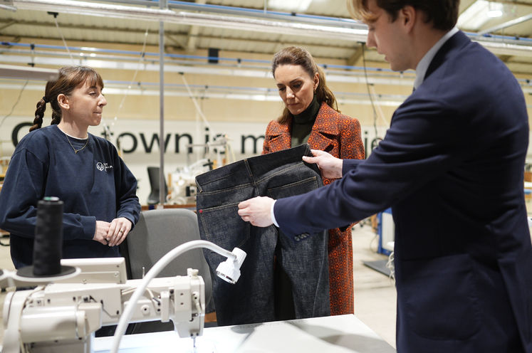 Prenses Kate Middleton, Galler'in Cardigan kentindeki bir kot fabrikasını ziyaret ettiğinde, mesleklerini öğrenen stajyerlerle birlikte üretim hattına katıldı.